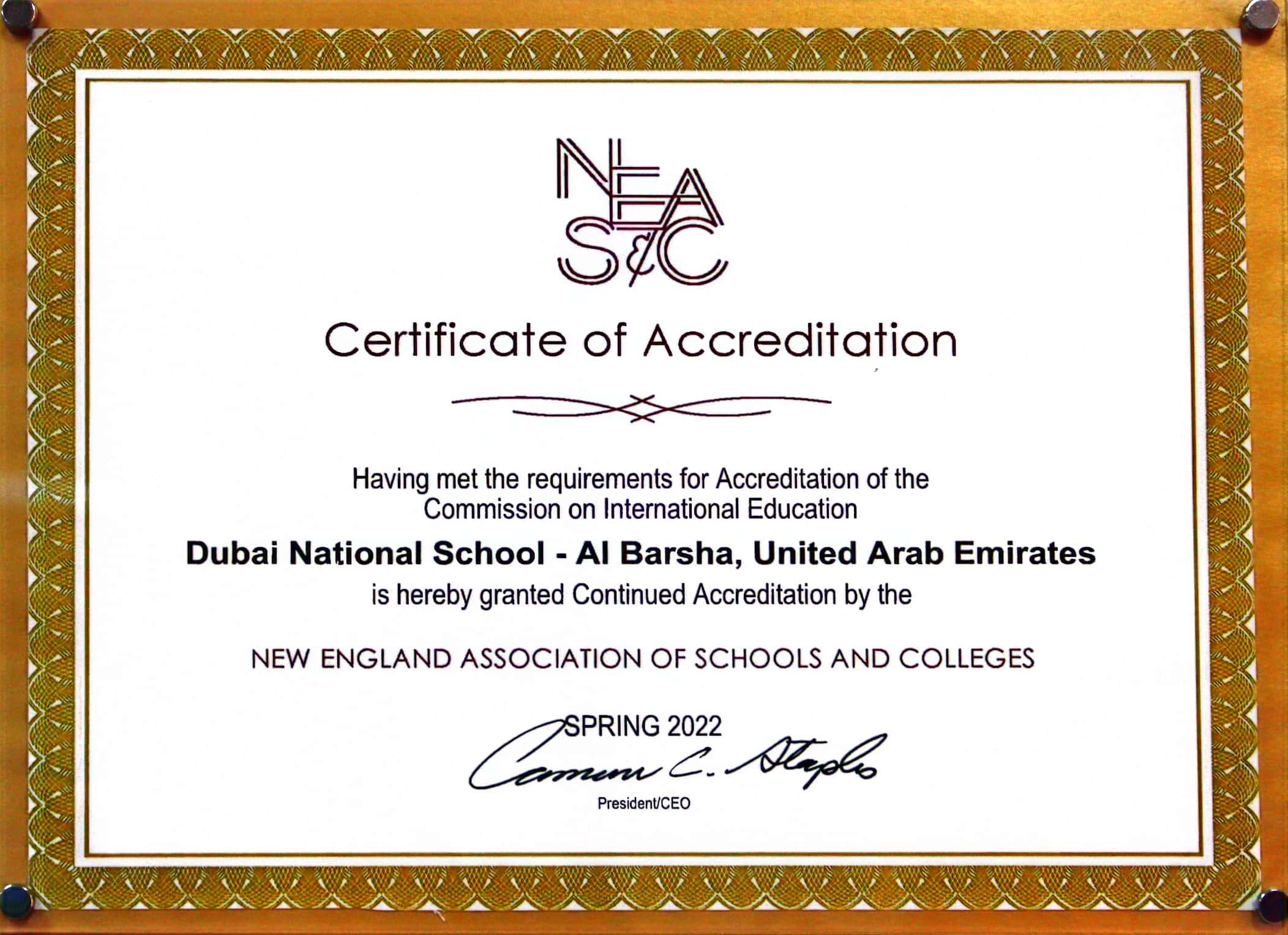 Dubai National School – Al Barsha was granted its third accreditation in July 2022, following the successful hosting of the NEASC External Review Visit (ERV) in May 2022 under the ACE Protocol.